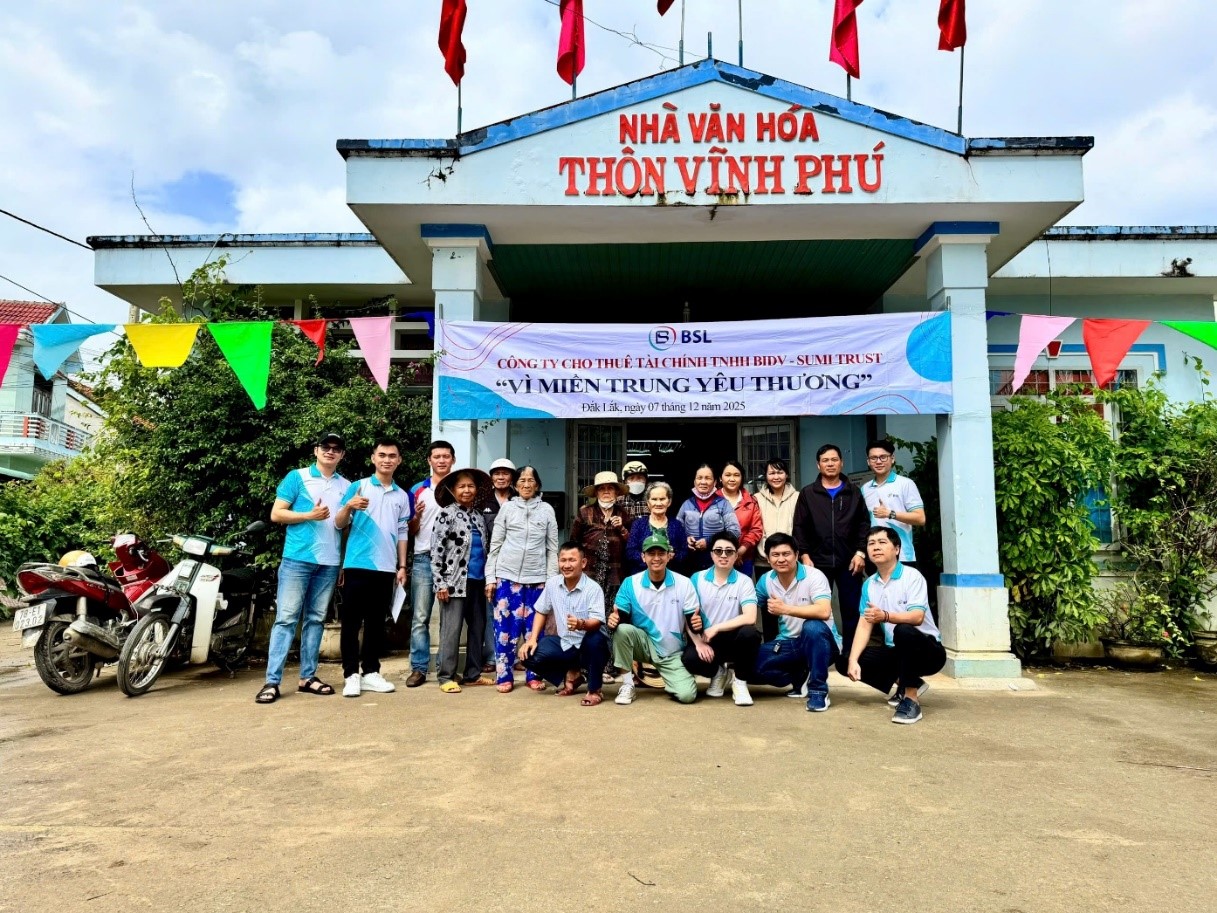 Đợt mưa lũ kéo dài từ tháng 10 đến tháng 11/2025 gây thiệt hại nghiêm trọng tại nhiều tỉnh miền Trung và Tây Nguyên, khiến hàng nghìn hộ dân rơi vào cảnh thiếu thốn. Trước tình hình đó, Công ty Cho thuê Tài chính TNHH BIDV – SuMi TRUST (BSL) đã triển khai đồng thời hai hoạt động hỗ trợ: chương trình quyên góp nội bộ trên toàn hệ thống và chuyến thăm, trao quà trực tiếp cho người dân thôn Vĩnh Phú (Đắk Lắk). Những nỗ lực kịp thời này tiếp tục thể hiện tinh thần sẻ chia đã trở thành nét văn hóa của BSL.